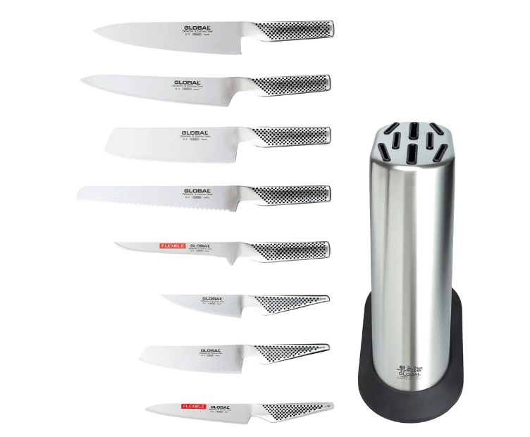2. Global Stainless Steel Dotted Knife Block Set (8 Knives) – http://www.globalknives.co.za