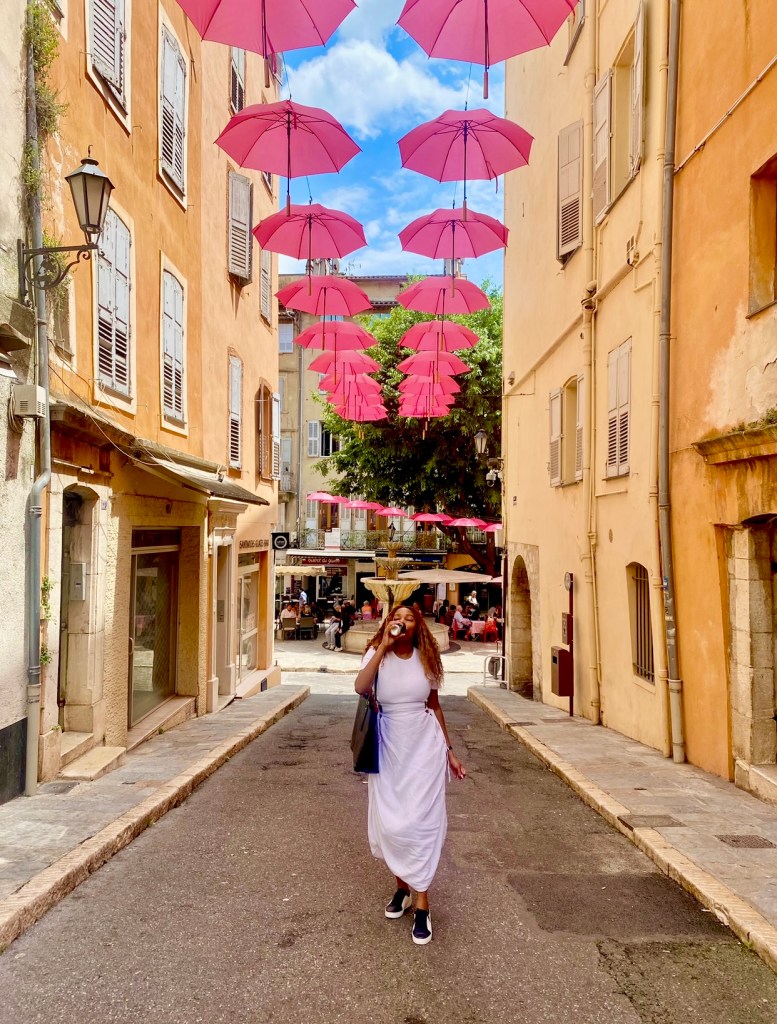 Referred to as the Mediterranean Balcony, Grasse is filled with amazing views with its narrow streets and buildings from the 17th and 18th century. Today, the streets are also littered with pink umbrellas hanging from the same ancient buildings, adding a whimsical air to the area.